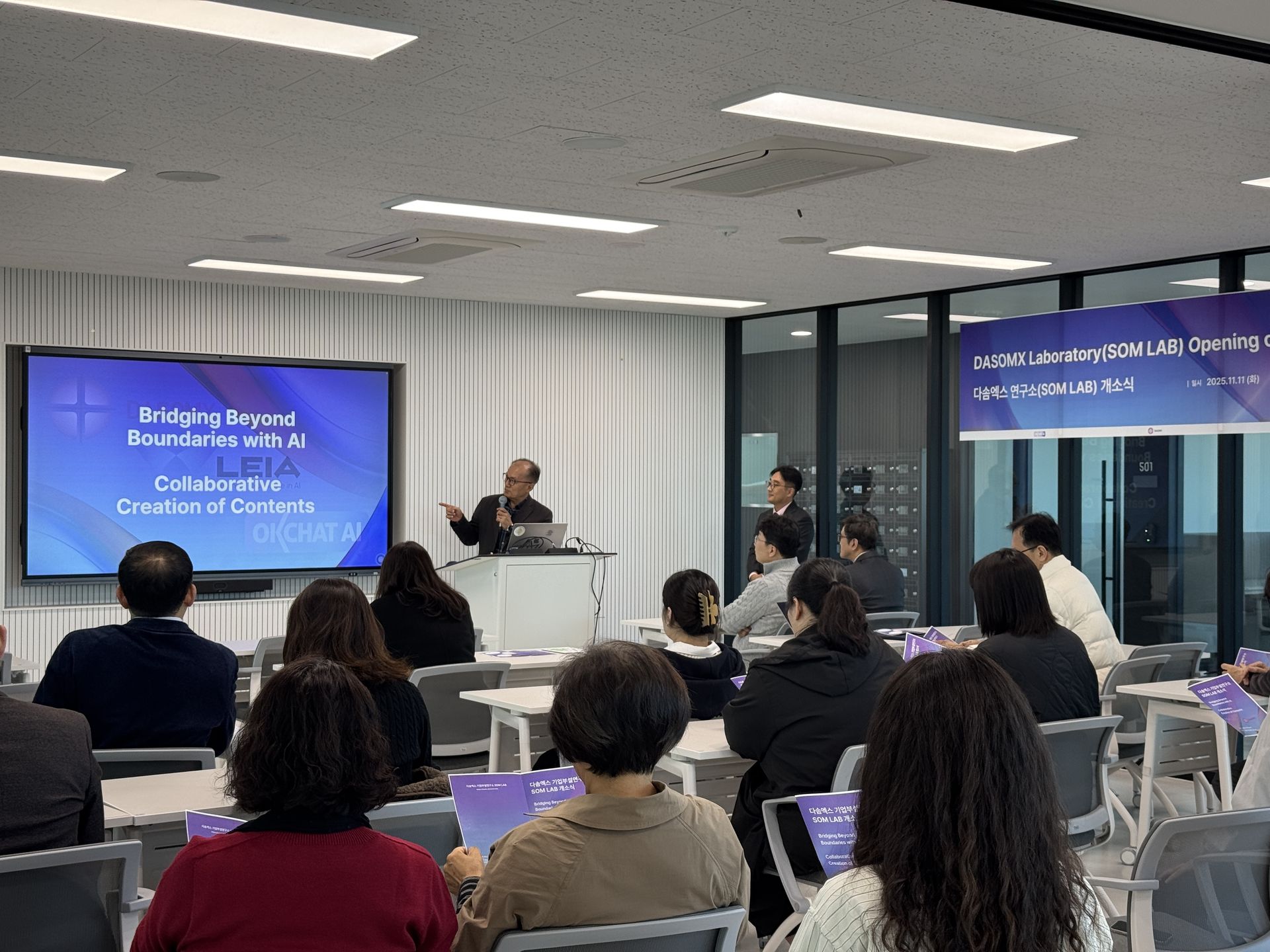 Last week, DASOMX officially opened its corporate research laboratory, SOM LAB, located within Handong University’s Genesis Lab. Faculty members, partners, student researchers, and our team gathered to celebrate this meaningful milestone. We extend our sincere gratitude to everyone who joined us and encouraged our next steps in innovation.